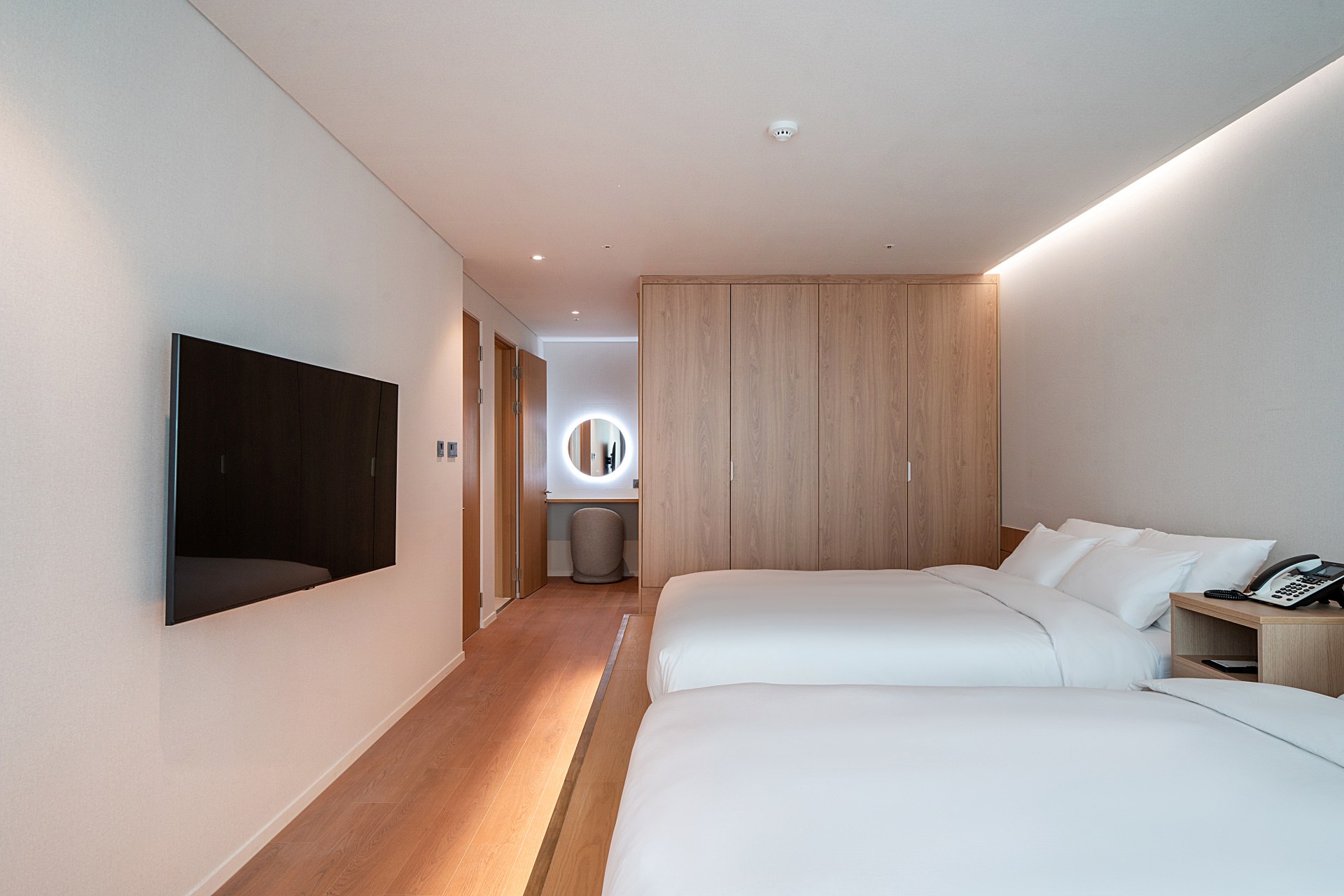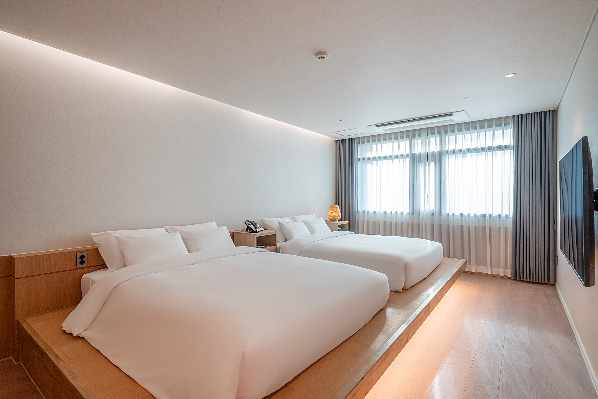 객실 : TV, 시스템 에어컨, 냉장고, 소파, 헤어드라이어, 가운, 비데, 전화기, 무소음 냉장고