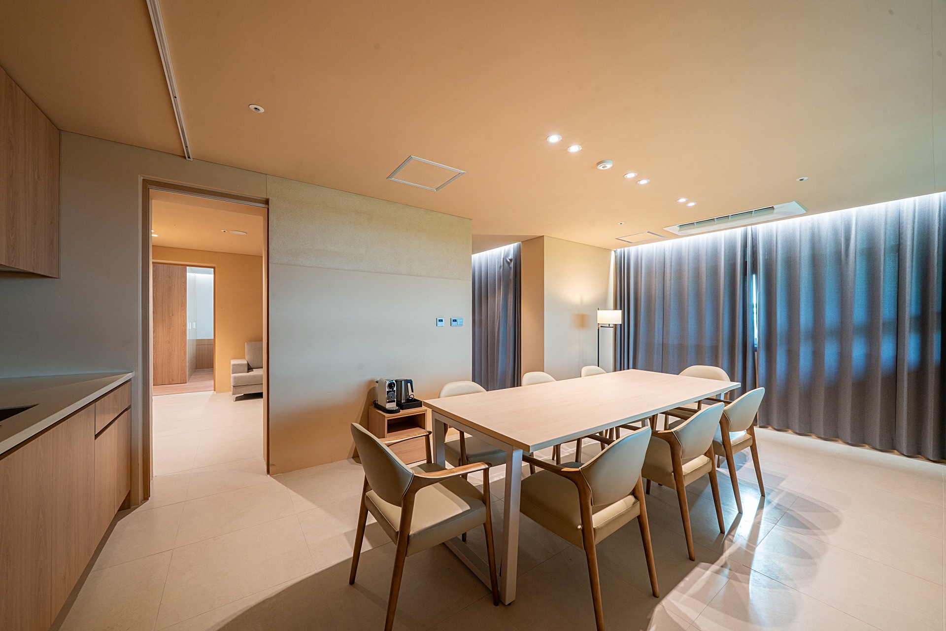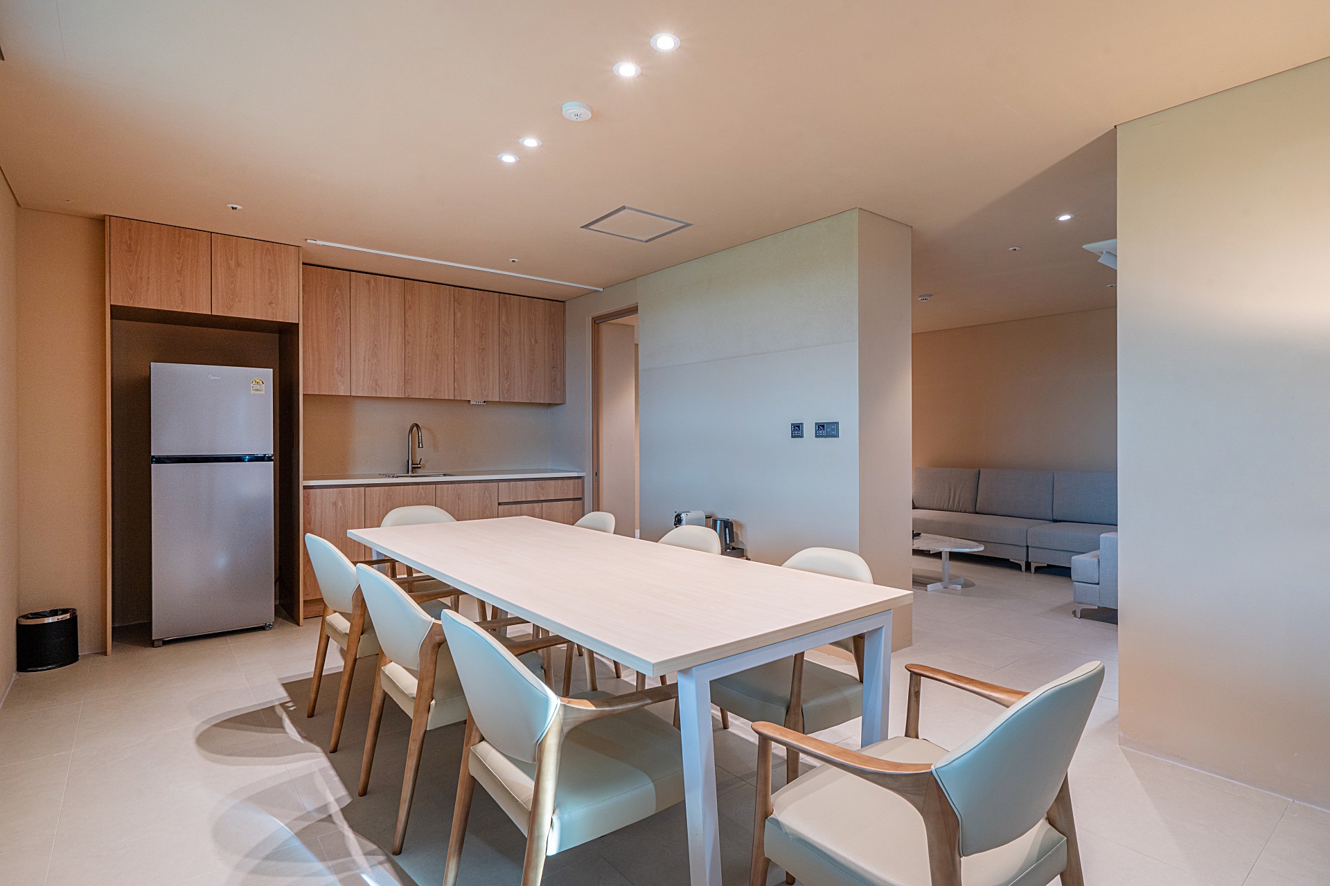 객실 유형 : 거실 + 침대룸(퀸사이즈 2) + 회의실 공간(8명) + 화장실 2