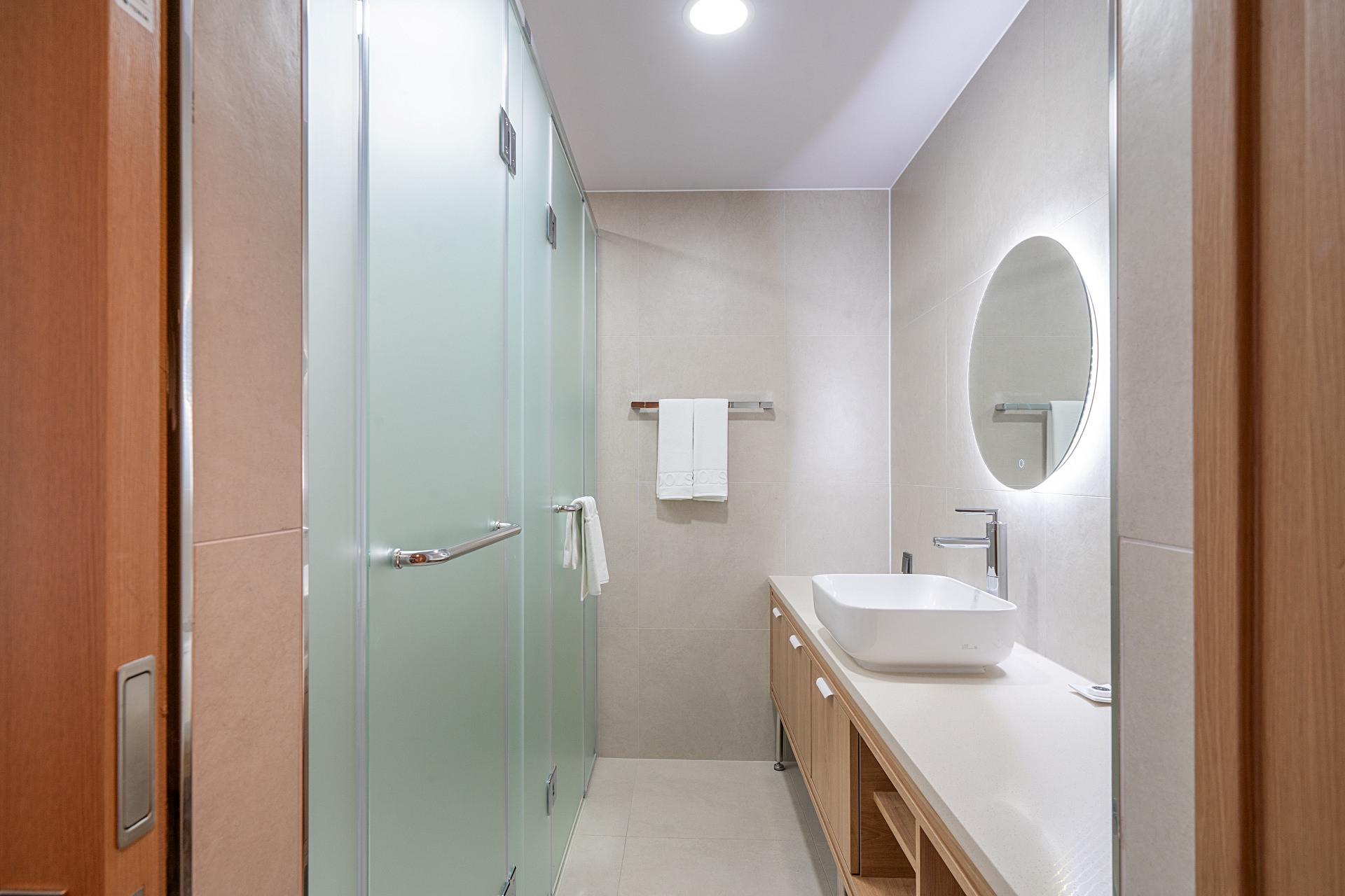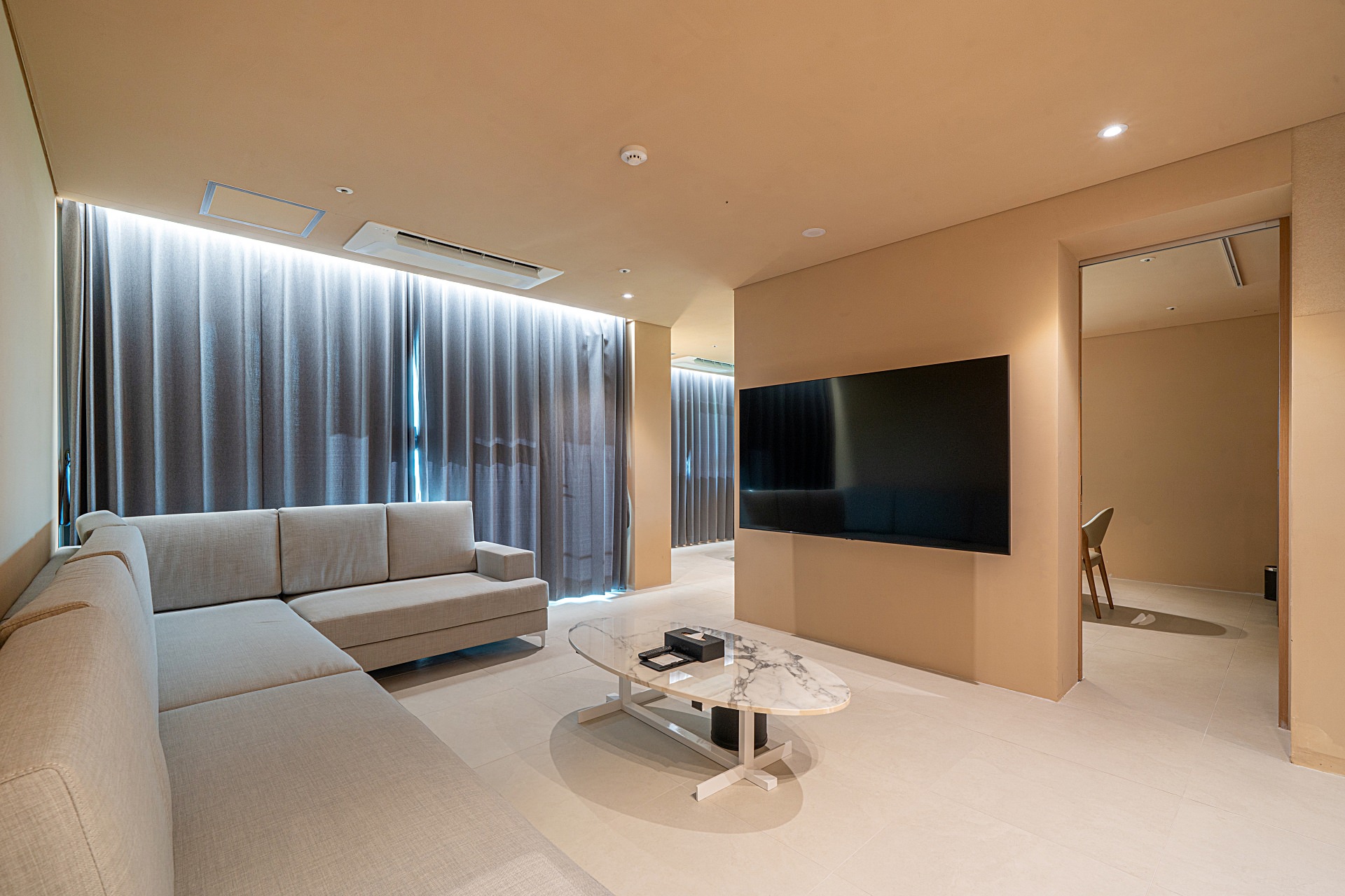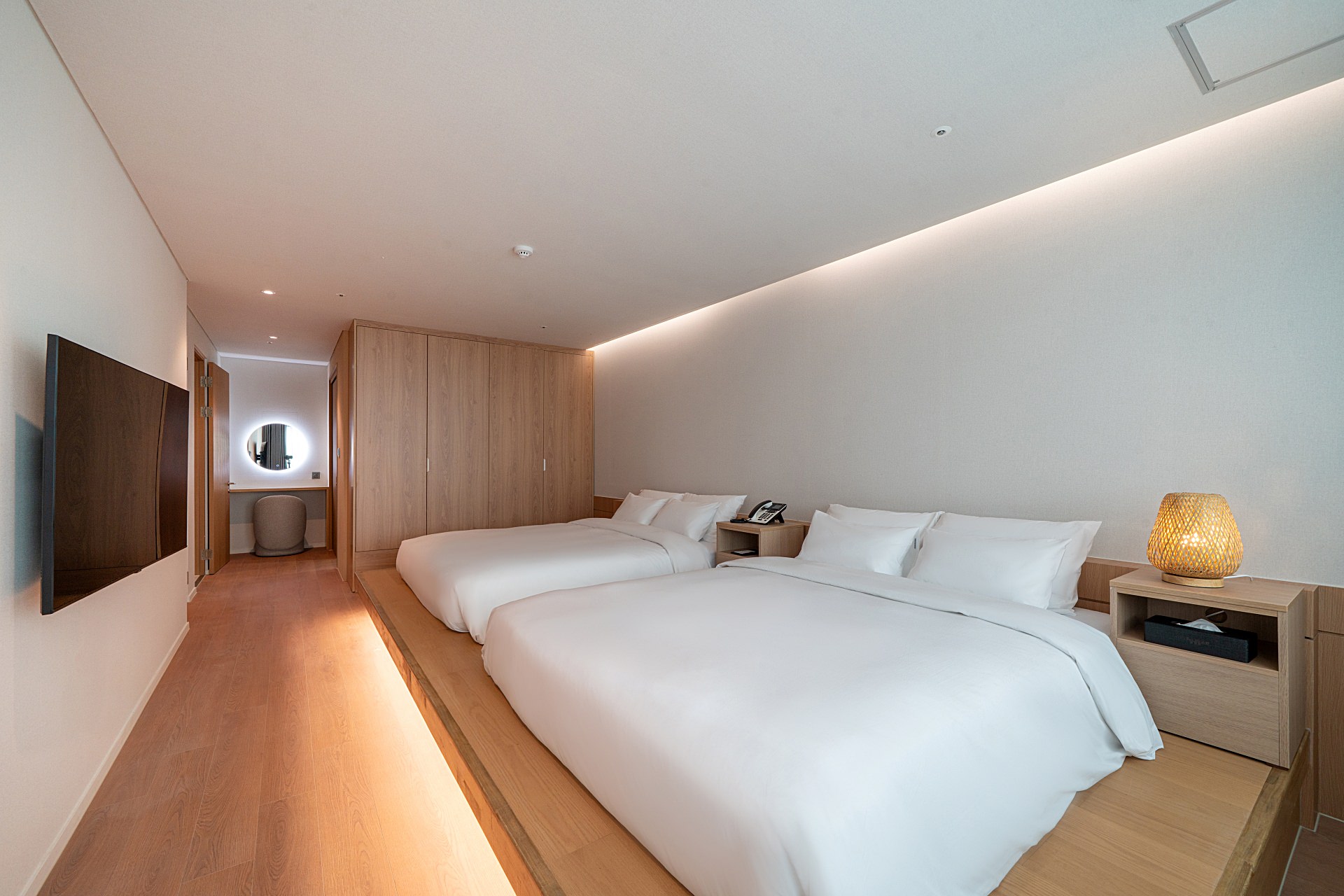 객실 : TV, 시스템 에어컨, 냉장고, 소파, 헤어드라이어, 가운, 비데, 전화기, 무소음 냉장고